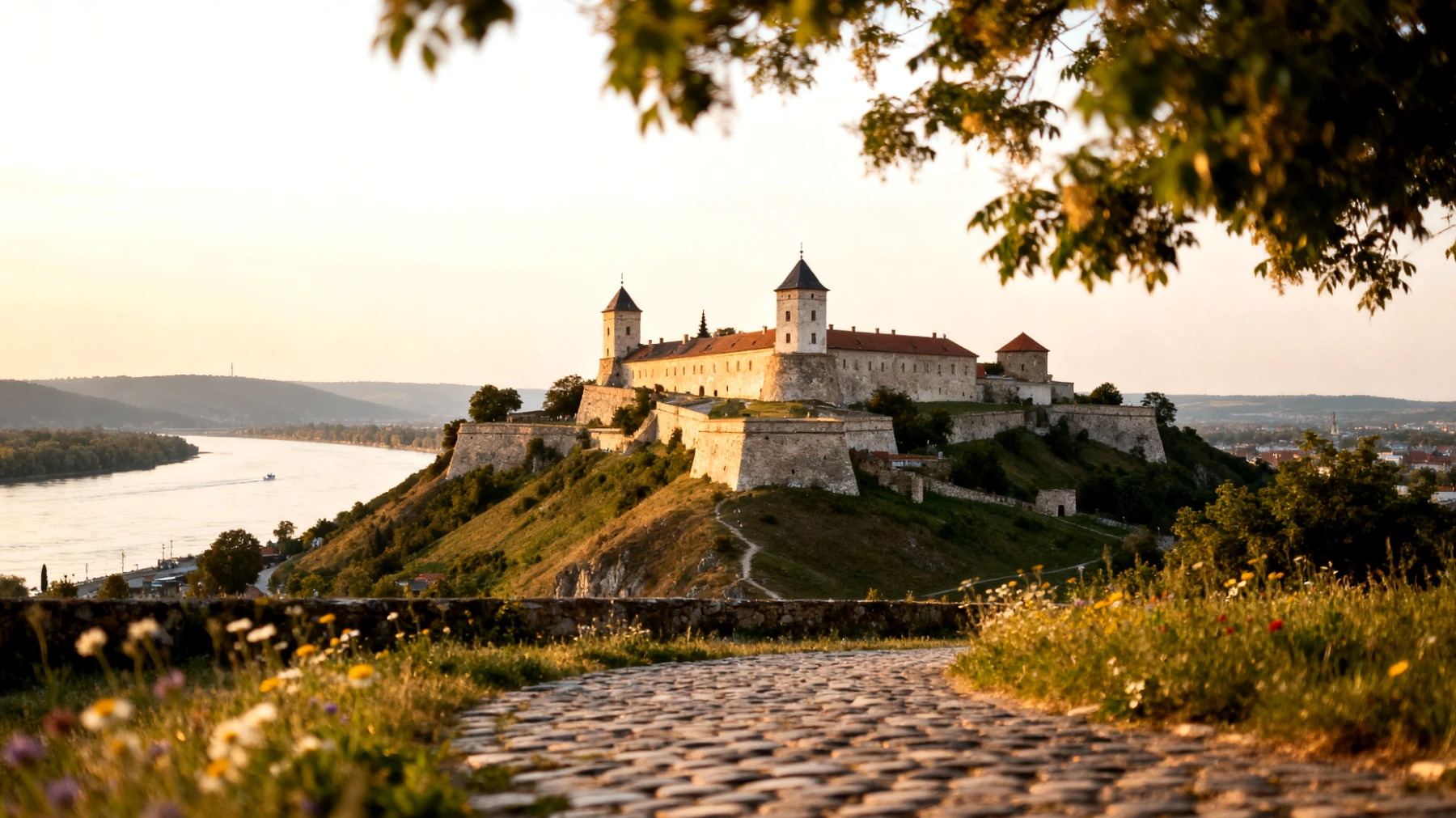 Entlang der Donaupromenade könnt ihr auch im Winter ausgedehnte Spaziergänge unternehmen. Die Uferstraße ist asphaltiert und gut begehbar, und die Aussicht auf den breiten Fluss hat zu jeder Tageszeit ihren Reiz – besonders eindrucksvoll ist der Sonnenuntergang, wenn sich der Himmel orangerot färbt und die Festung gegenüber in warmes Licht getaucht wird.