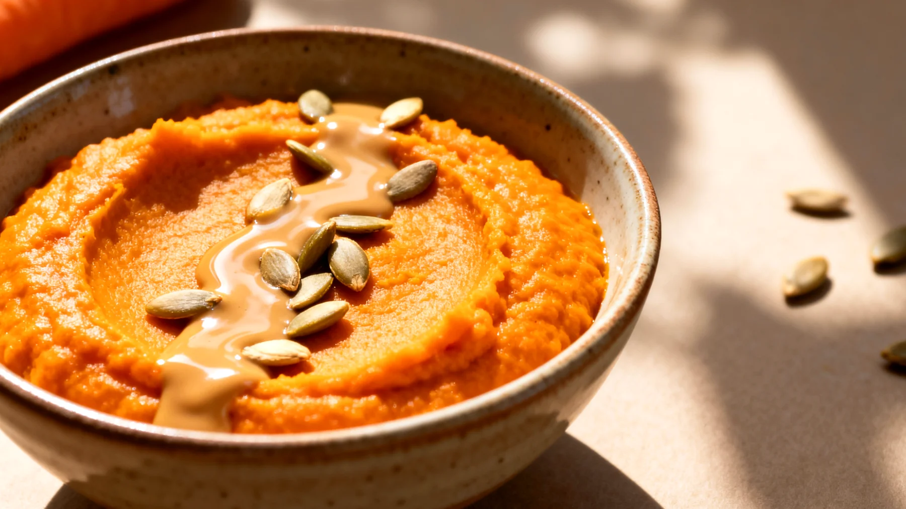 Wer morgens nach einem Snack sucht, der nicht nur satt macht, sondern gleichzeitig die Haut von innen nährt, findet im Karottenmus mit Tahini und Kürbiskernen eine überraschend wirkungsvolle Kombination. Karotten liefern reichlich Beta-Carotin, Tahini bringt gesunde Fette und Vitamin E mit, während Kürbiskerne den entscheidenden Zink-Kick beisteuern. Diese drei Zutaten ergänzen sich perfekt und versorgen trockene, matte Haut gezielt mit jenen Nährstoffen, die häufig zu kurz kommen.