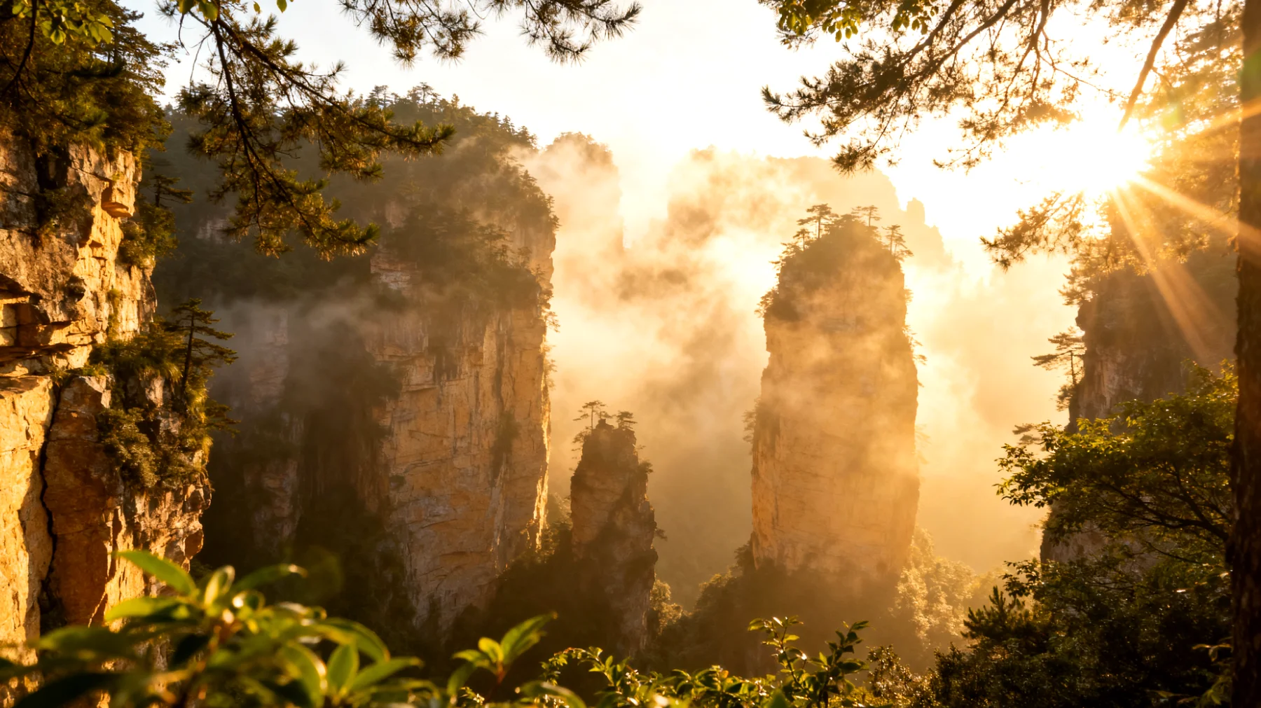 Ein Wochenende mit Freunden in Zhangjiajie bedeutet, gemeinsam in eine andere Welt einzutauchen. Die eisige Januarluft macht die Luft kristallklar, sodass die über 3000 Sandsteinsäulen im Nationalpark noch dramatischer wirken. Während die Sommermonate von Touristenmassen geprägt sind, gehört der Park im Winter praktisch euch und euren Freunden. Die Nebelschwaden, die zwischen den bis zu 200 Meter hohen Felsnadeln aufsteigen, schaffen eine Atmosphäre, die gleichzeitig unwirklich und atemberaubend ist.