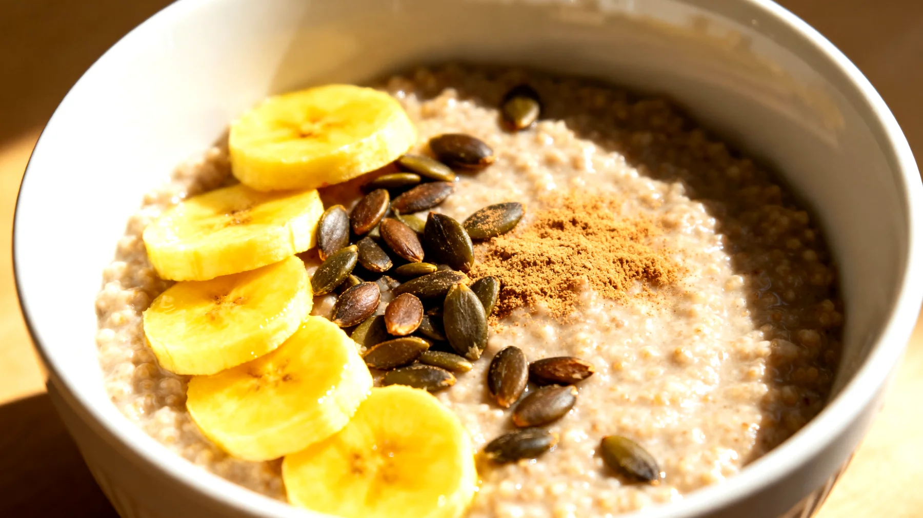 Nach einem intensiven Training braucht der Körper gezielte Unterstützung, um sich optimal zu regenerieren. Genau hier setzt das Amaranth-Bananen-Porridge mit Kürbiskernen und Zimt an – eine Mahlzeit, die weit mehr kann als nur sättigen. Dieses nährstoffreiche Frühstück vereint pflanzliche Proteine, komplexe Kohlenhydrate und wertvolle Mikronährstoffe in einer Schüssel und eignet sich damit perfekt als Post-Workout-Mahlzeit für Hobby-Sportler.